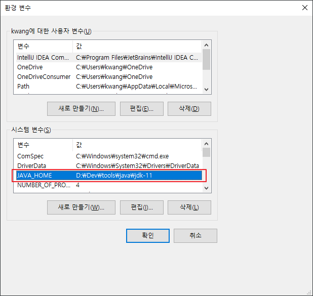 변수 값 : D:\Dev\tools\java\jdk-11