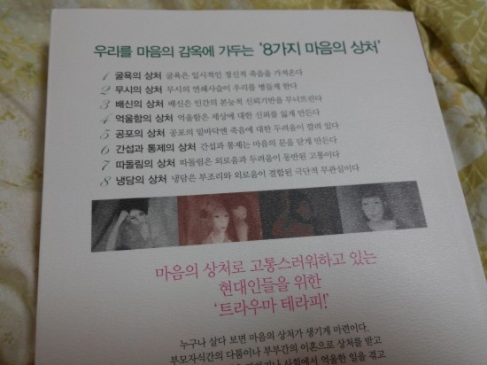 아무래도 개인의 경험에 따라 공감가는 부분이 다를꺼라 생각이 되는데 내겐 굴욕, 간섭과 통제, 냉담의 상처 부분이 마음에 많이 와닿았다.