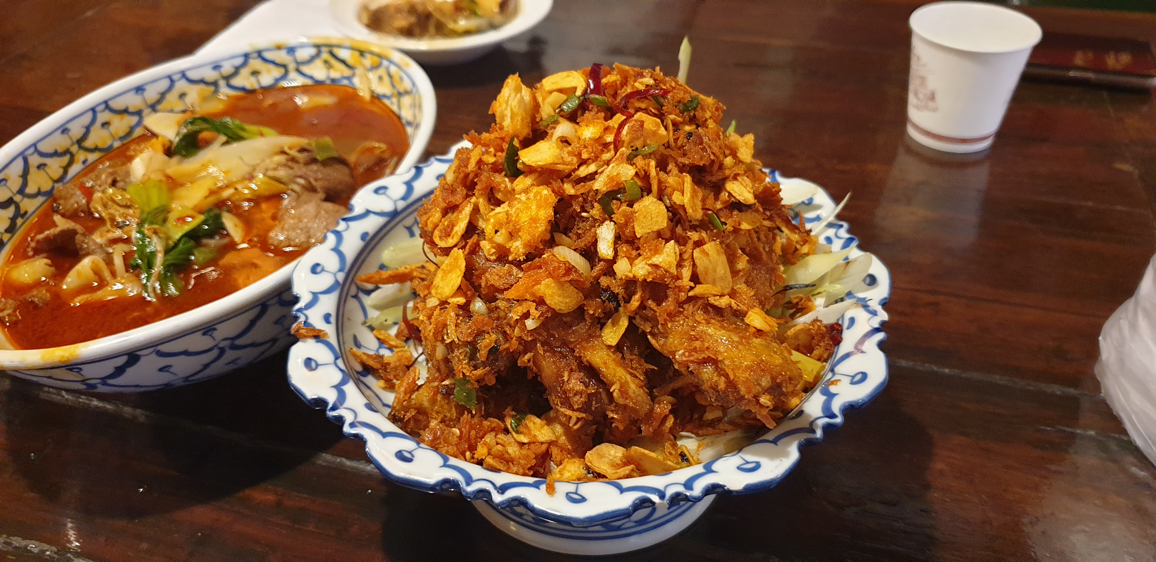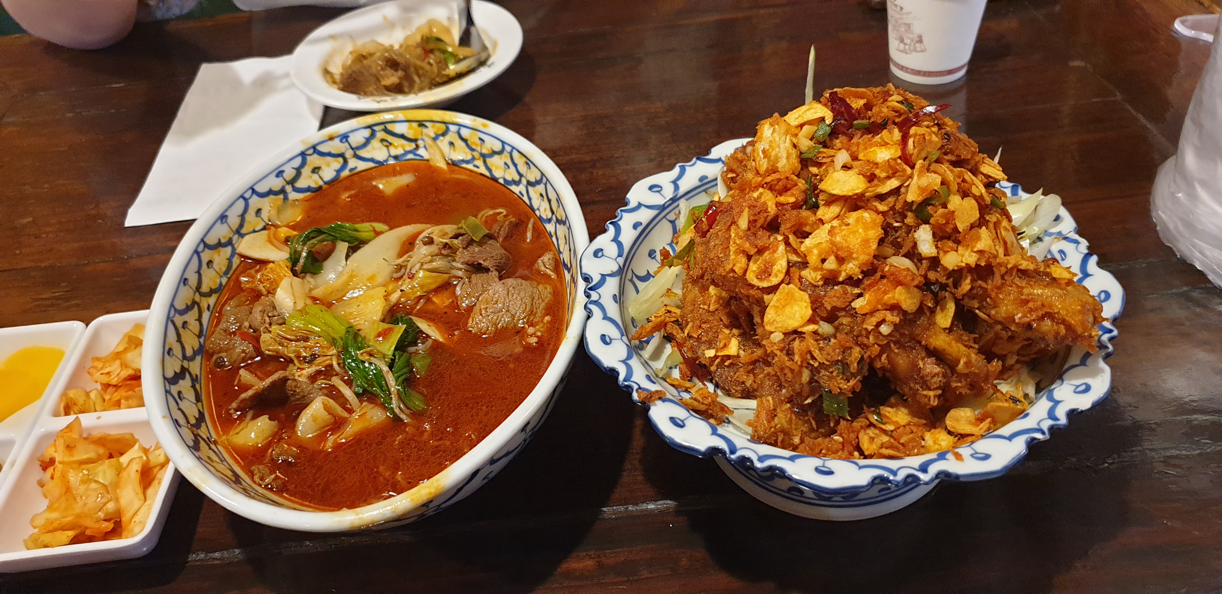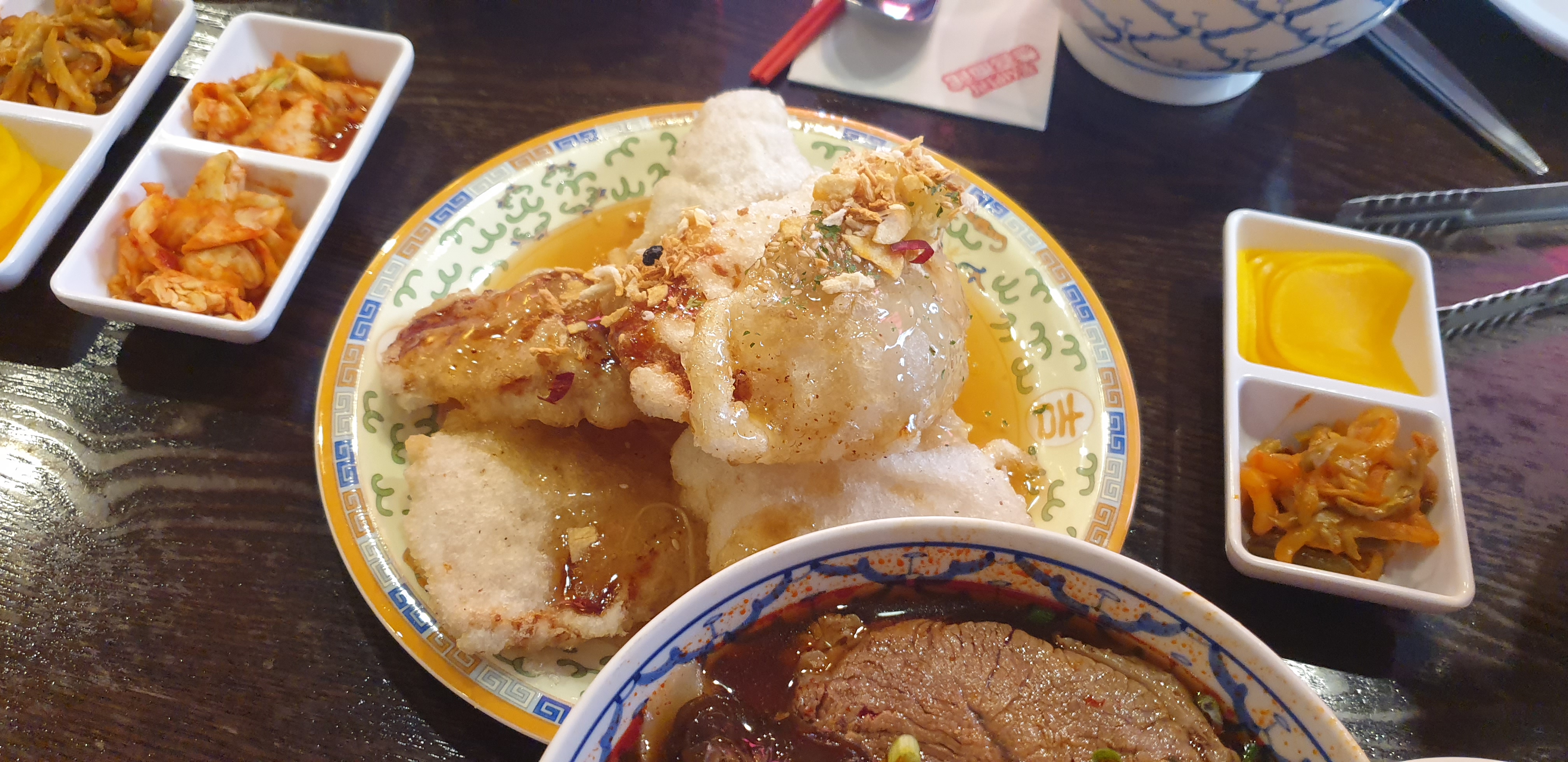 꽁시면관을 한번만 간 게 아니고 여러번 다녀왔기 때문에 하루에 다 찍은 사진이 아니고 여러날의 걸쳐 찍은 사진들이다. 위 사진은 우육면과 꿔바로우를 주문해서 먹은 사진이다. 꿔바로우를 사이즈별로 판매하지 않고 딱 한 사이즈만 판매하기 때문에 양 조절을 할 수가 없었는데 우육면도 많고 꿔바로우도 많아서 이 날 다 먹고 배가 터지는줄 알았다. 그래도 우육면도 맛있고 꿔바로우도 맛있었다. 꿔바로우는 찹쌀탕수육 처럼 쫄깃하고 특유의 레몬맛(?) 같은 소스도 맛있고 해서 만족스럽게 잘 먹었다.
