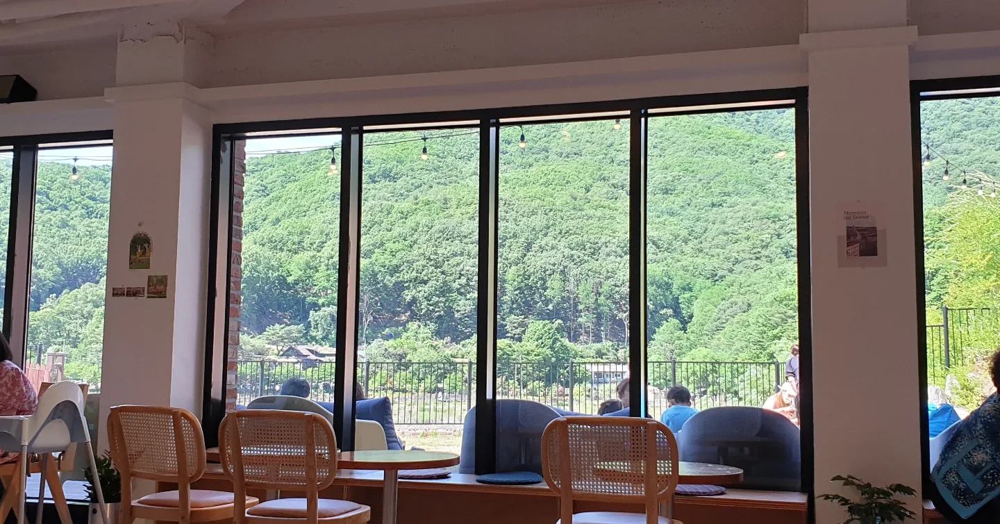 카페 바로 앞 전경도 예쁜데 안에 인테리어도 나름 예쁘게 잘 되어있다. 야외에도 테이블이 있고 안에도 테이블이 있다. 대부분 다 야외에 자리를 잡기 때문에 안쪽 자리는 여유가 있어 보인다. 사람이 엄청 많이 오면 상황이 달라지긴 하겠지만...