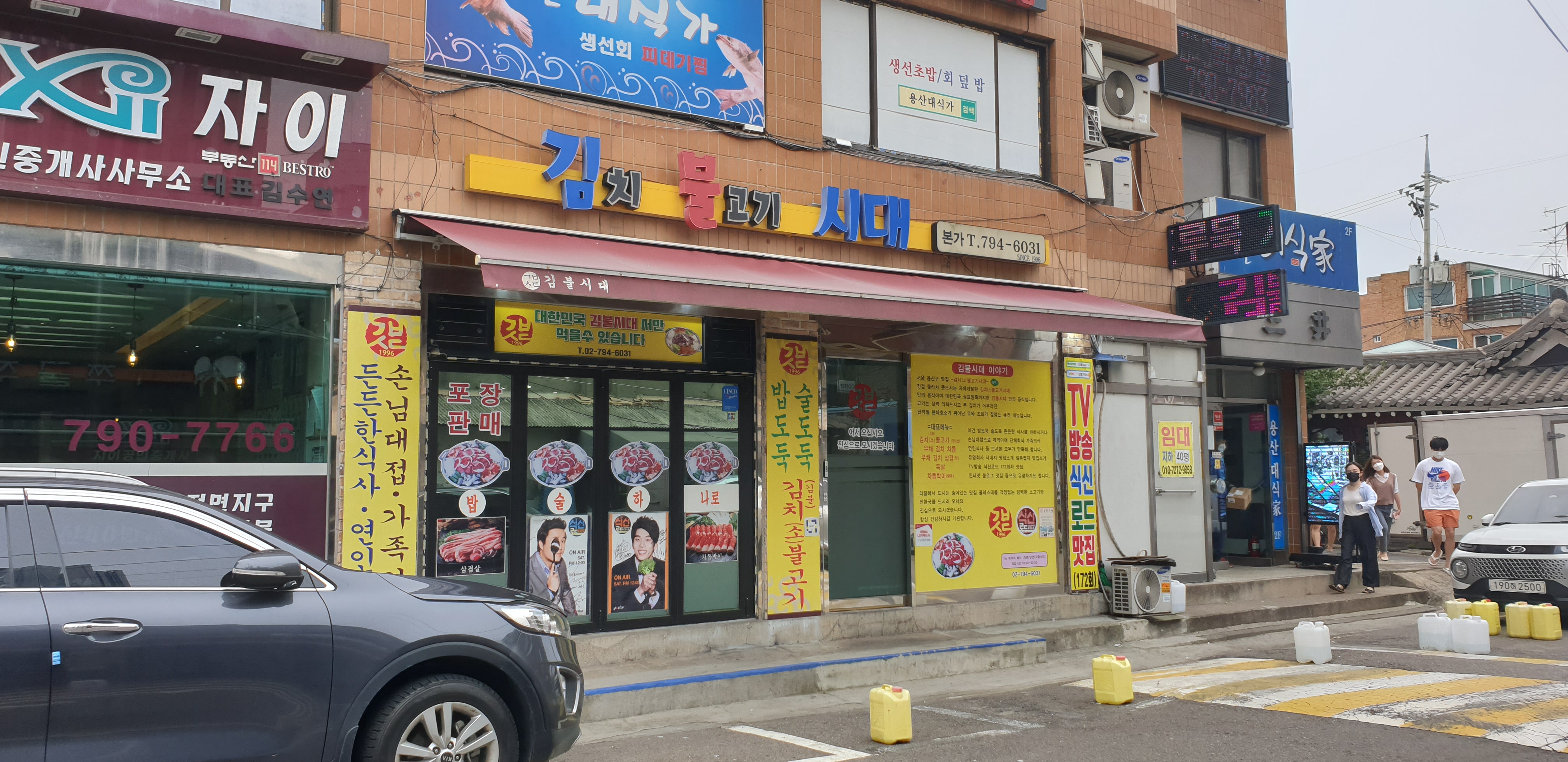 용산역에 내려서 밖으로 나와 오른쪽 드래곤 힐 스파 찜질방을 지나 조금 더 걷다 보면 위 사진 처럼 쉽게 김불시대(김치 불고기 시대)를 찾을 수 있다. 전에는 이것보다 훨씬 더 규모가 컸던 것 같은데 규모는 전보다 줄어든 것 같다. 그래도 정말 맛있게 먹었던 식당에 정말 오랜만에 다시 찾아왔다는 생각에 뭔가 기분이 좋았다.