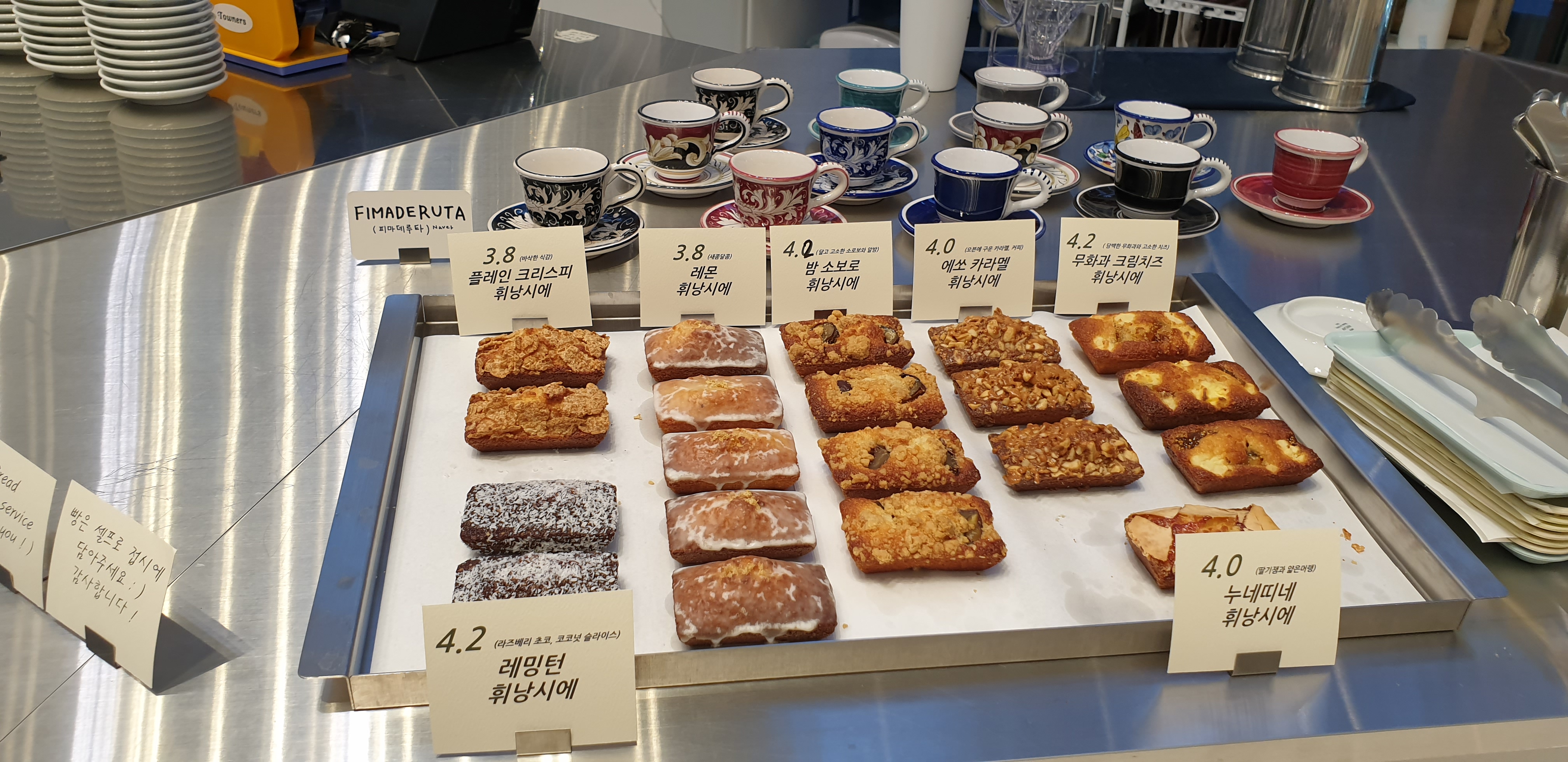 친절하신데 서비스로 먹을 것(휘낭시에)도 하나 더 주셨다.