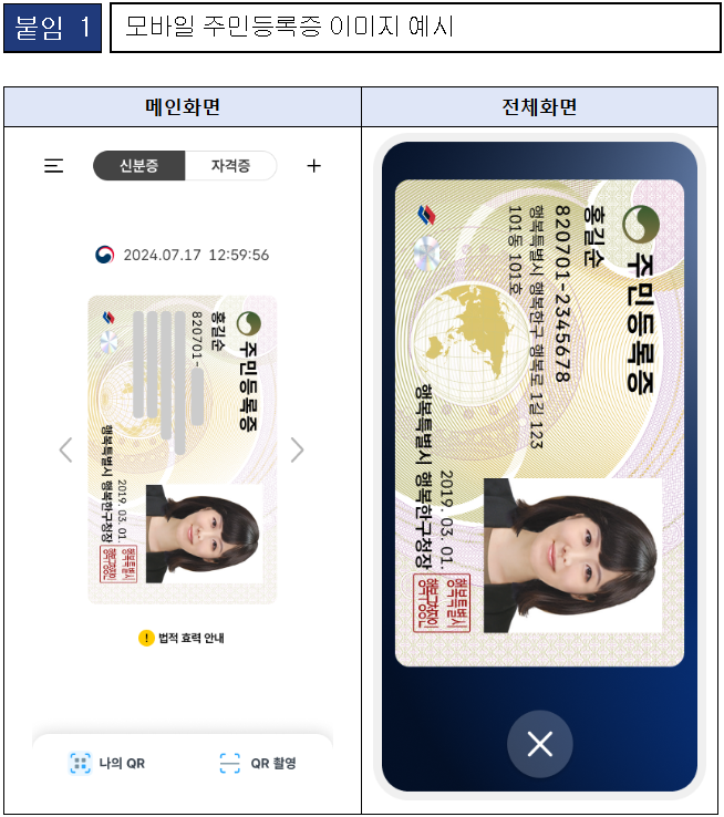 - 실물 주민등록증 및 모바일 주민등록증 동시 사용 가능