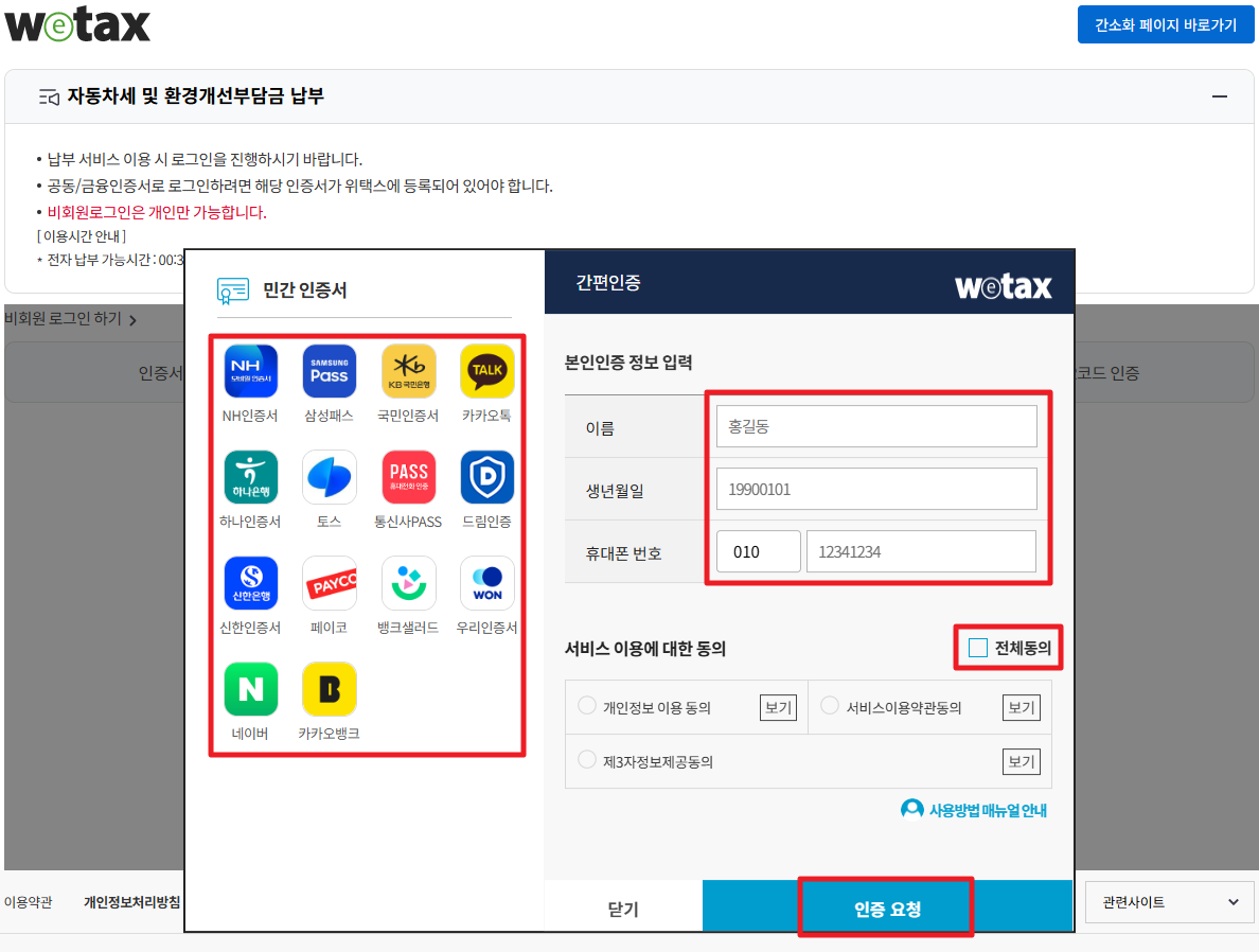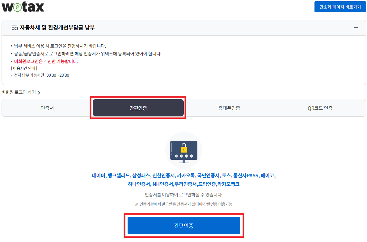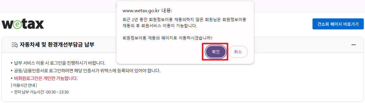 Wetax 위택스 자동차세 연납신청 전용 서비스 간소화페이지