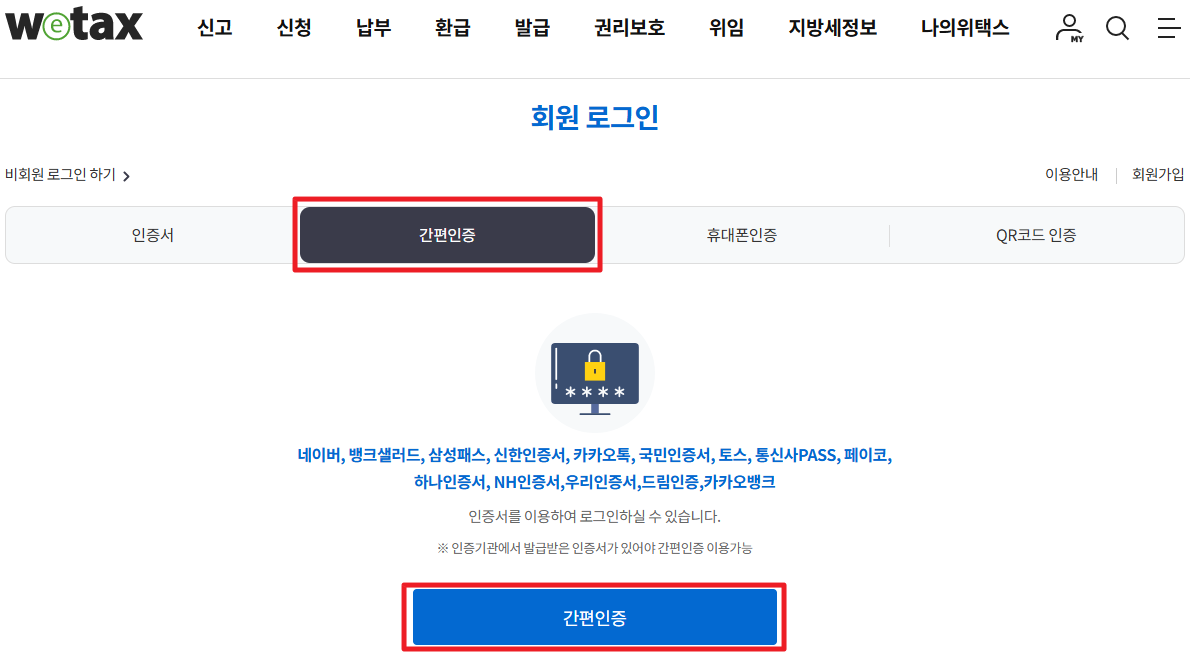 위택스 간소화 페이지에 접속합니다. 접속 링크는 위에 있으니 참고하시기 바랍니다.