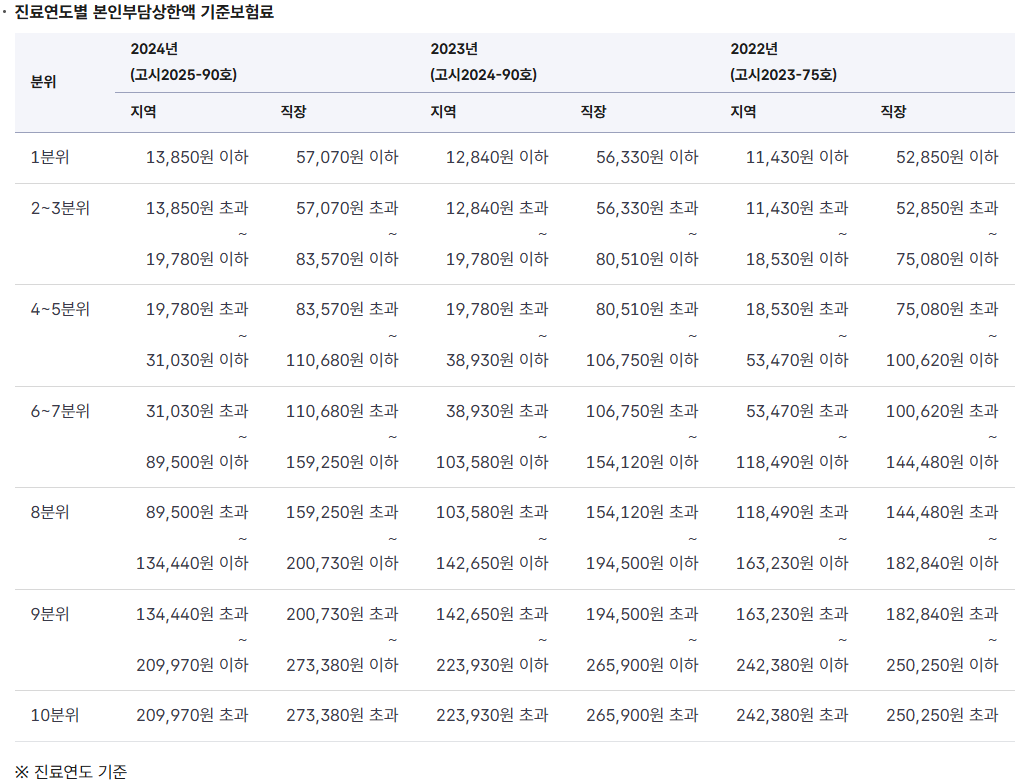 | 건강보험료 소득 분위 | 본인부담상한액 (2025년 진료분) |
